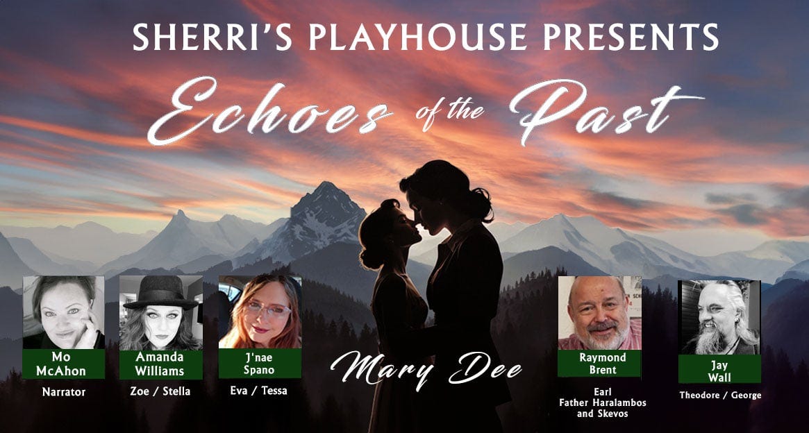 Sherri’s Playhouse’s next radio play is; Echoes of the Past by Mary Dee, based on her original books about the adventures of Eva and Zoe, which will be coming out in early February. Above is the beautiful poster for the show. If you have been following our radio plays about Eva and Zoe, this one gives more information about them before they moved to Australia. Get out some hankies. #sherrisplayhouse